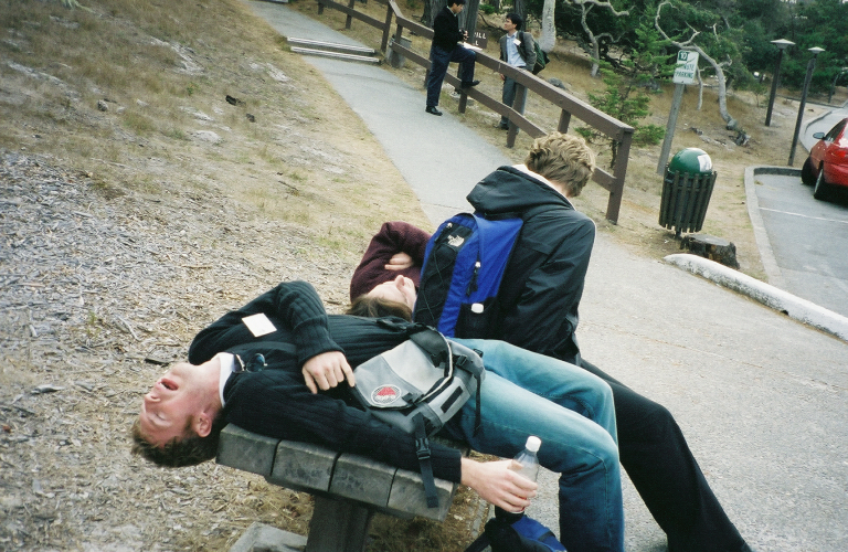 Three weary grad students (Andy, John W., and Katie):